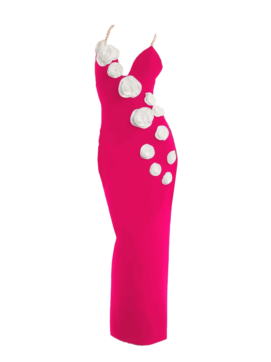 The dress is gorgeous and exactly like the pictures! The red color is vibrant and the rose design is very romantic. The material is comfortable and light, ideal for a summer wedding. The only downside would be that I would have preferred the straps to be a little wider for better support. Otherwise, I am very happy with the purchase and will definitely wear it to other events.
