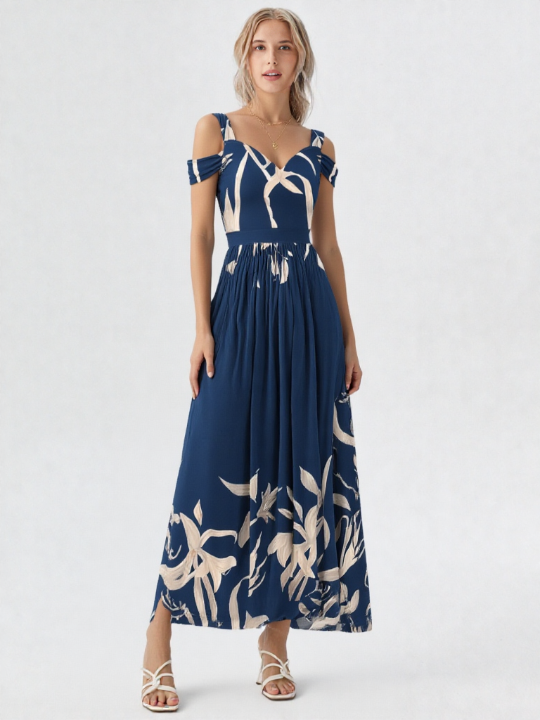 High-waisted maxi dress with bold prints