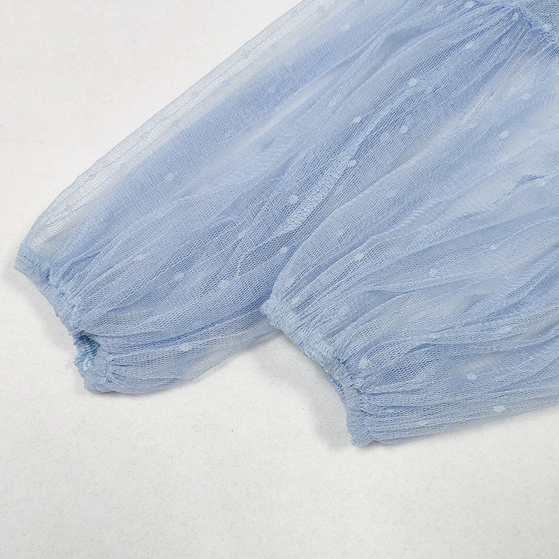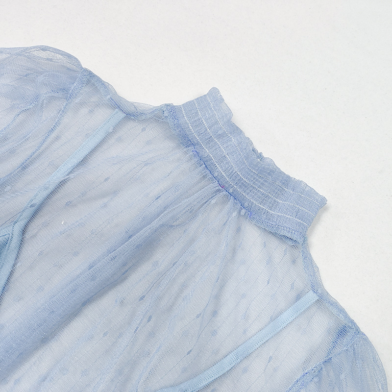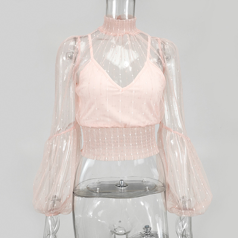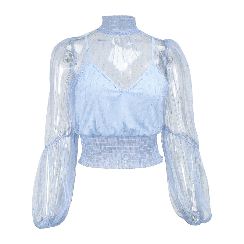Discover the Alina Top, a sheer mesh top with chiffon shirt, perfect for a casual European and American look.