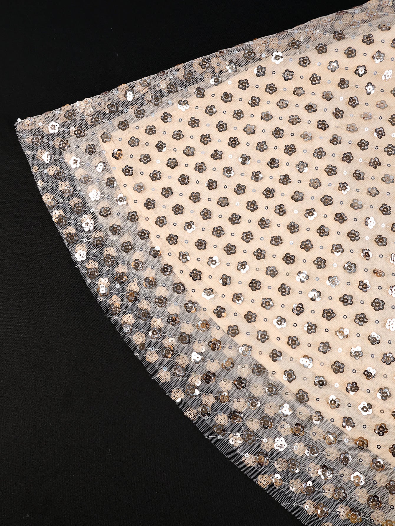 - Style: High-waisted cut with a tulle top layer, decorated with small flower-shaped sequins.